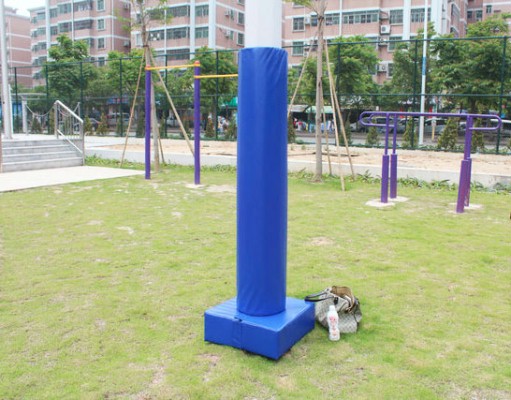 户外球场灯柱保护套,音响柱保护套,篮球架保护套,安全保护墙垫 五一前一个星期,顶得烈烈的大太阳,我们给珠海一中附属实验学校操场安装了灯柱,音响柱,篮球架,墙体的安全保护工程,一色的深兰,给校园增加了不一样的风景,以下为我随手拍的几个产品图片,供大家分享。